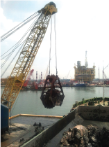 In citing an example, a scoop attached to the end of a rope or pole by which a man can draws ediments up from the bottom of a pond is a dredger. Developing this idea further, a motorised crane equipped with a drag-bucket or clamshell (grabber) that is used to scoop material from thebottom of a body of water is also a dredger.